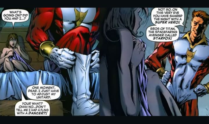 Andrew Wheeler On Twitter Starfox Is Thanos S Brother Eros Of Titan A Snake Hipped Redhead With Impeccable Cheekbones And A Pepsodent Smile Where Thanos Digs Death Eros Loves Love And Also Fucking He S