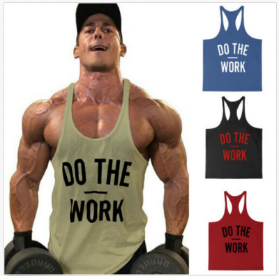 Men S Do The Work Gym Cotton Bodybuilding Tank Tops Muscle Fit Stringer Y Back Ebay